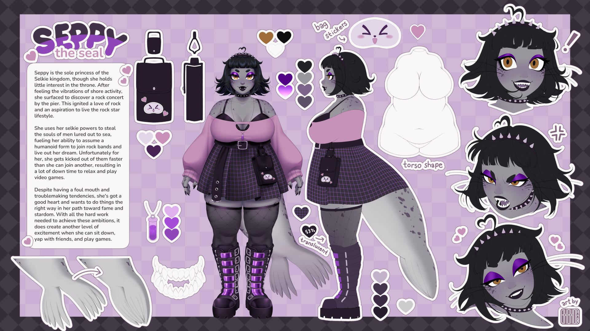 Thorough guide of a character design for the purpose of an all in one reference for illustrations and 3D modeling.Expressions, colors, and shading are optional.
